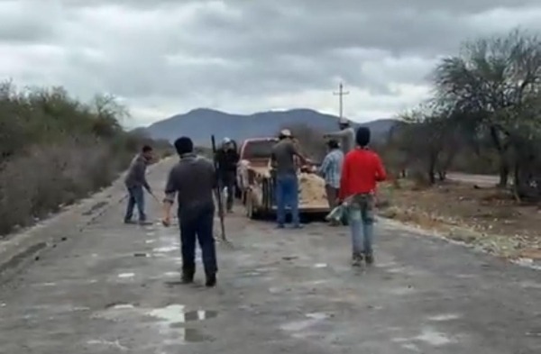 A pesar de las inclemencias del clima, al registrarse lluvias durante el domingo 05 de abril, salió un considerable grupo de personas que con camionetas, herramientas de trabajo y hasta una máquina, fueron tapando cada uno de los baches de este camino con tierra.