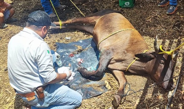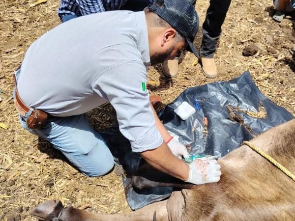 Mientras en San Ciro de Acosta, el cuarto caso reportado fue en la lejana localidad La Encantada, donde un bovino con más de un año de edad presentaba una herida sobre el abdomen y pata delantera derecha, de igual forma con plaga de gusanos.