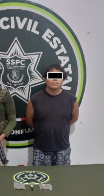 Agentes de la Guardia Civil Estatal (GCE), en sus acciones contra el narcomenudeo, interceptaron a Jesús Alejandro N., de 24 años de edad, de la colonia Santa Cecilia, en la esquina de las calles Escontría y Venustiano Carranza.