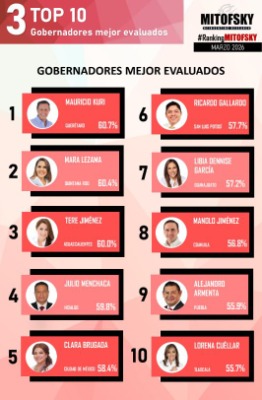 El mandatario potosino alcanza el sexto lugar nacional en el ranking de aprobación ciudadana de Consulta Mitofsky durante el mes de marzo.