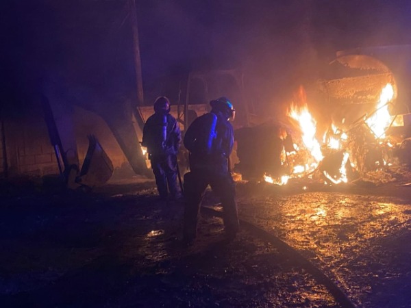 La madrugada de este jueves se registró un incendio en un frente de obra ubicado en la colonia Víctor Manuel Santos, donde dos unidades de trabajo pesado fueron consumidas por el fuego, quedando completamente inutilizadas.