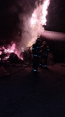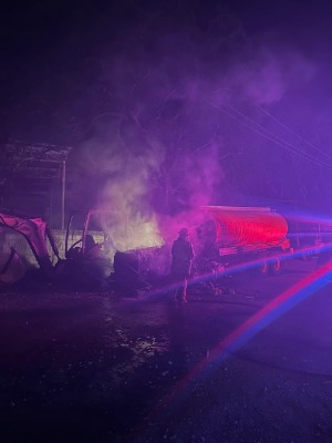 Elementos del Cuerpo de Bomberos Voluntarios acudieron de inmediato y comenzaron con las labores para sofocar el incendio, el cual ya había envuelto una retroexcavadora y la cabina de un camión con tanque tipo cisterna, equipo que formaba parte de los trabajos de pavimentación en la zona.
