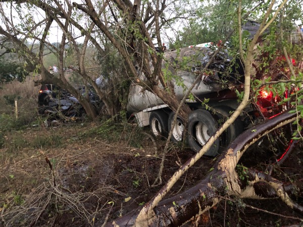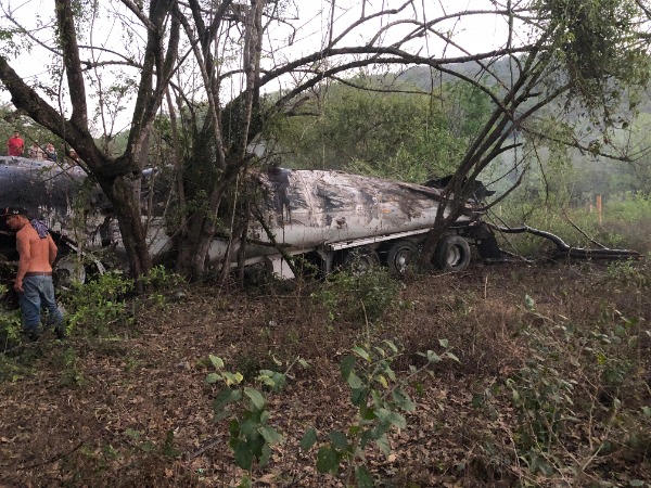 Un fuerte accidente entre un tráiler tipo cisterna y una camioneta movilizó a cuerpos de auxilio la tarde de este viernes, luego de que ambas unidades cayeran a un barranco en la carretera libre Valles–Rioverde.