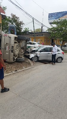 Vuelca camioneta tras choque en acceso a la Central de Ciudad Valles; saldo, un lesionado leve