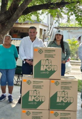 El Presidente Municipal David Armando Medina Salazar, acompañó a la titular de la Secretaría de Desarrollo Social y Regional (SEDESORE), Rosario Martínez Galarza, y al Delegado en Ciudad Valles, Jesús Guadalupe González Vargas, en el arranque del programa de Seguridad Alimentaria en su modalidad "Casa por Casa", como muestra del compromiso de trabajar cercanos a la población y atender de manera directa sus necesidades,