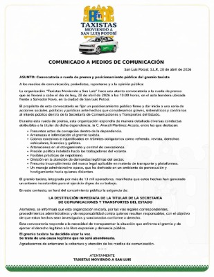 En un movimiento que promete sacudir la administración estatal, la organización "Taxistas Moviendo a San Luis" ha convocado a una movilización pública para exigir la destitución inmediata de la titular de la Secretaría de Comunicaciones y Transportes (SCT), Aracely Martínez Acosta.