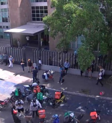 Más de 40 motocicletas de repartidores de plataformas como Didi, Uber y de diversas marcas de comida de la localidad se encuentran presentes bajo el sol, con sus unidades estacionadas de forma ordenada, ocupando los dos carriles principales.