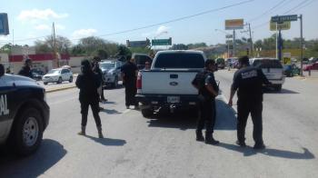 Decenas de policías bloquearon unos minutos el bulevar México-Laredo a la altura de Soriana de Lomas del Yuejat, luego de detectar a un hombre que viajaba en una camioneta de lujo y traía armas de fuego.