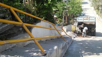 El hombre que la traía dijo que iba por una subida de dicha calle cuando de repente el peso de la carga que traía en la caja ocasionó que se ladeara y ya no pudo controlar la unidad, chocando contra el barandal que se encuentra junto a la banqueta a desnivel.