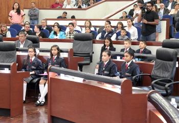 Los siete legisladores infantiles de San Luis Potosí que participaron en el 10° Parlamento de las Niñas y los Niños de México, realizaron este día en el pleno del Congreso del Estado la Declaratoria en defensa de sus derechos y que tienen un valor vinculatorio para autoridades legislativas y gubernamentales de las 32 entidades del país.