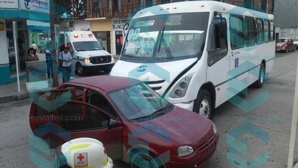 Un autobús urbano con número 09 ruta Consuelo-Centro circulaba por Escontría y al llegar al cruce no hizo alto y chocó contra el costado izquierdo de un Chevy rojo.